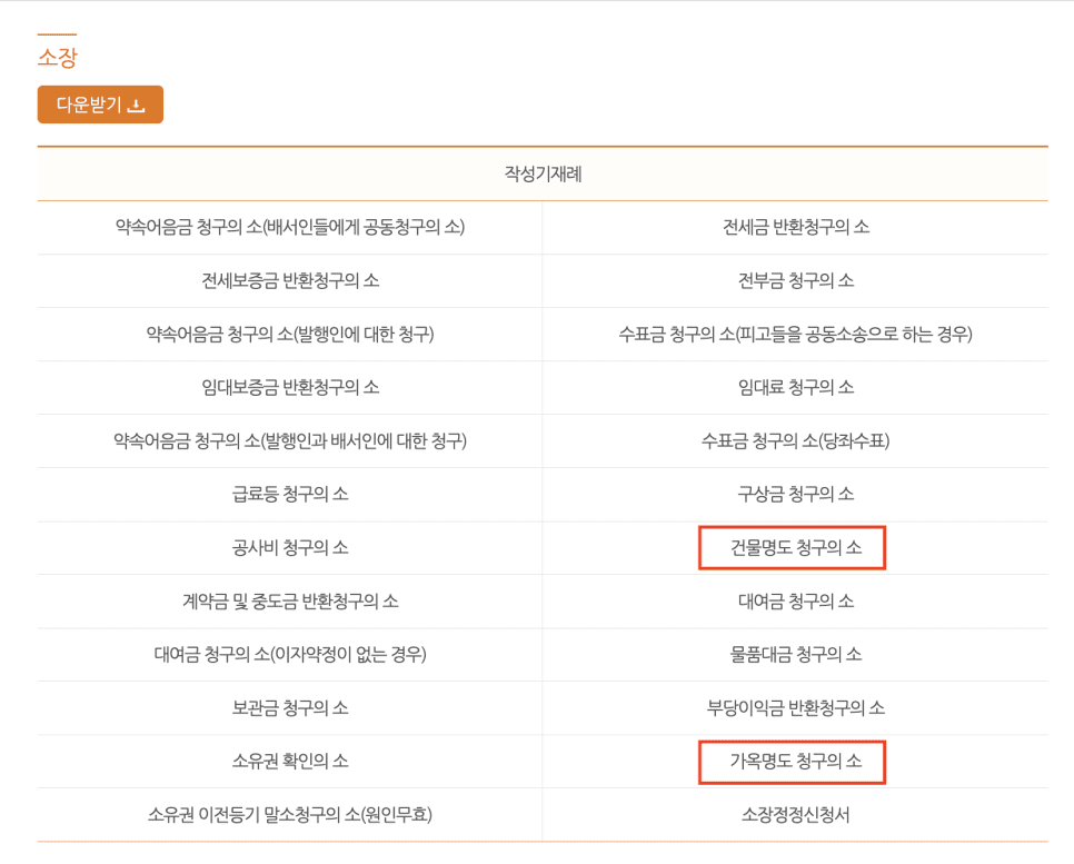 그러면 명도소송 소장은 어떻게 써야 할지 궁금하신 분들이 많을 겁니다. 간략하게나마 내용을 파악하시기 편하게끔 법률구조공단과 법원 전자민원센터의 양식을 공유드리겠습니다.